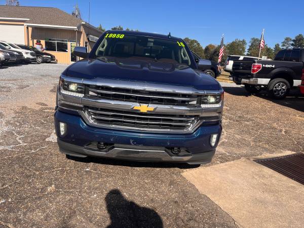 2016 Chevrolet Silverado 1500 4x4 Z71 High Country Crewcab, 5.3L V-8, automatic, blue with dk tan leather, p.w., p.l., tilt, cruise, cd, XM, power sunroof, power seats, heated & A/C seats, power running boards, fog lights, bed liner, bed cover, tinted glass, tow pkg., backup camera, alloys, 188k miles, runs perfect, ONLY $ 18,950., price includes warranty, Call or txt Frank Rutland @ 334.657.8931 or 334.730.0701